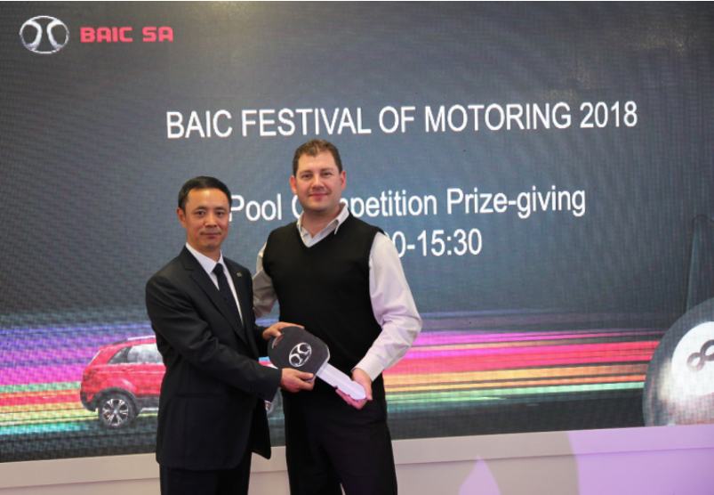 The Beijing Summit of the Forum on China-Africa Cooperation was officially opened on September 3, 2018. Leaders of China and African countries gathered in Beijing to jointly plan the roadmap for China-Africa cooperation in the new era. On August 30, BAIC showcased a variety of products in the South Africa Festival of Motoring, and launched a customised Colored interior X25 and right-hand-drive BJ40L for local market. This is the debut of BAIC products in the South Africa market after the first car off-line ceremony of the BAIC South Africa plant on July 24. It not only demonstrates its steadfast determination to take root in the market, but also another move by BAIC to build a model of pragmatic cooperation between China and South Africa. Jiang Zili, Vice president of BAIC Group attended the event and presented the award to the champion of pool competition, a BAIC's named activity.