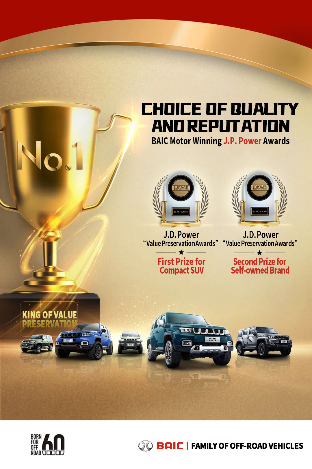 BJ 40 ranking first on the J.D.Power Value Preservation List for self-owned brand compact SUVs