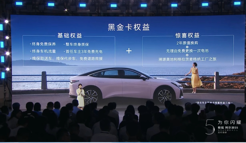 為體現對用戶的關懷,張建勇、曾毓群和羅蘭·普雷特納帶來了價值喜人的黑金卡權益,包括終身免費保養、終身車機流量、首任車主3年免費充電、維保取送車、維保代步車、免費道路救援等鉅惠權益,讓用戶代表們大呼驚喜。