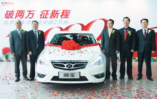 2013 年10 月,北京汽車總銷量達到25071 輛,其中,北汽紳寶1000 輛以上、北汽E 系列8008 輛、北汽威旺16000 輛。在競爭日益激烈的汽車市場,作為不折不扣的“新軍”,北京汽車以一連串令人瞠目的數字,在傳統汽車市場殺出一條血路,為自主品牌重新標定了“火速”增長的新紀錄,彰顯了“北京速度”。跨越月銷20000 輛的門檻,北京汽車只用了兩年多的時間,這背后也凝聚了所有北京汽車人的心血和智慧,以及廣大經銷商對北京汽車的大力支持。