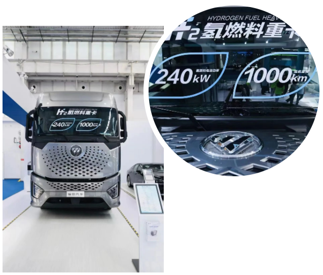 與億華通聯(lián)合打造的全球首款干線物流燃料電池重卡——福田49T氫燃料重卡